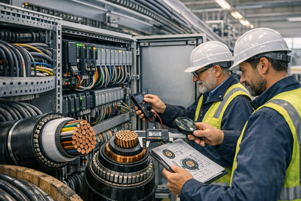 3. Cable construction confirmation – Conductor class, insulation, shield and sheath are matched to specification.