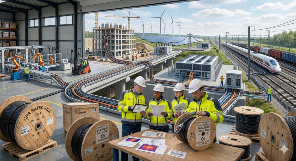 Building and construction projects require CPR-compliant cables with appropriate Euroclass and documentation. Fixed wiring, distribution and fire-performance requirements drive specification. Ecables coordinates bulk supply and DoP alignment for residential, commercial and infrastructure builds.
