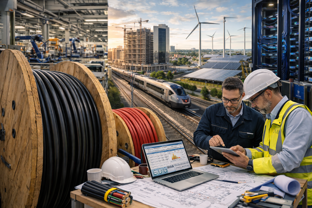 Railway and fixed infrastructure projects require cables that meet EN 50264, EN 50343 and project-specific specifications. Rolling stock, signalling and fixed installations have distinct requirements. Ecables coordinates supply aligned with railway and infrastructure standards.