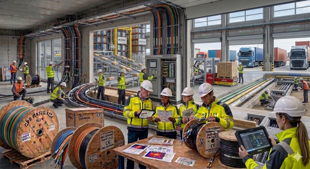 IEC standards, EN standards. DoP and project documentation. Ecables coordinates supply for European logistics facilities.